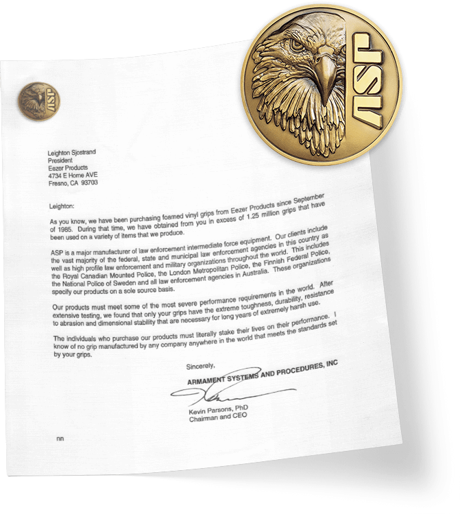 The durable, non-slip grip and tactile feel of EZR Foam provides a distinguished feeling, leading to a safer handling experience and improved firearm retention. In fact, EZR Foam can proudly be found in products produced for police and military professionals by Armament Systems and Procedures, Inc., including flashlights, personal safety devices, and batons.